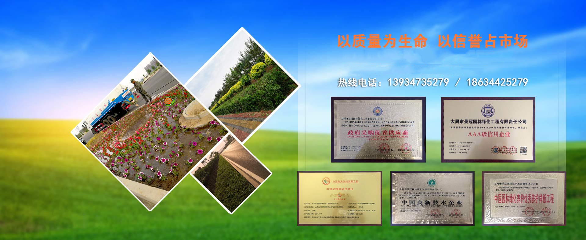 大同市景冠園林綠化工程有限責任公司是一家根植于設計、施工、植保養護、苗木花卉生產于一體的園林景觀企業。公司“以質量為生命”、“以信譽求發展”這是公司一貫的經營宗旨。并以創新,誠信,綠色,共享的發展理念,創造良好的企業環境。堅持愛綠,護綠,保綠的方針為城市增添一份綠色,用綠色擔當生態建設使命是我們共同追求的價值和企業目標。以全新的管理模式,完善的技術,周到的服務,卓越的品質為生存根本。幾年來我們致力于園林景觀植物領域的研究,在城市綜合體景觀,校園園林景觀,道路景觀,生態農業景觀,美麗鄉村景觀,濕地景觀等多個領域參與規劃設計施工。不斷加大科技投入力度,加強人才的儲備,網絡技術的培訓,提升自主創新能力,不斷完善企業文化,用超前的技術制定出一套完整的園林植保技術管理方案。我們堅持以擔當為使命,用戶至上,服務至上,秉持初衷,不忘初心,實實在在,心無旁騖做好植保養護主業,打造屬于自己的企業品牌,好好服務客戶,打動客戶。